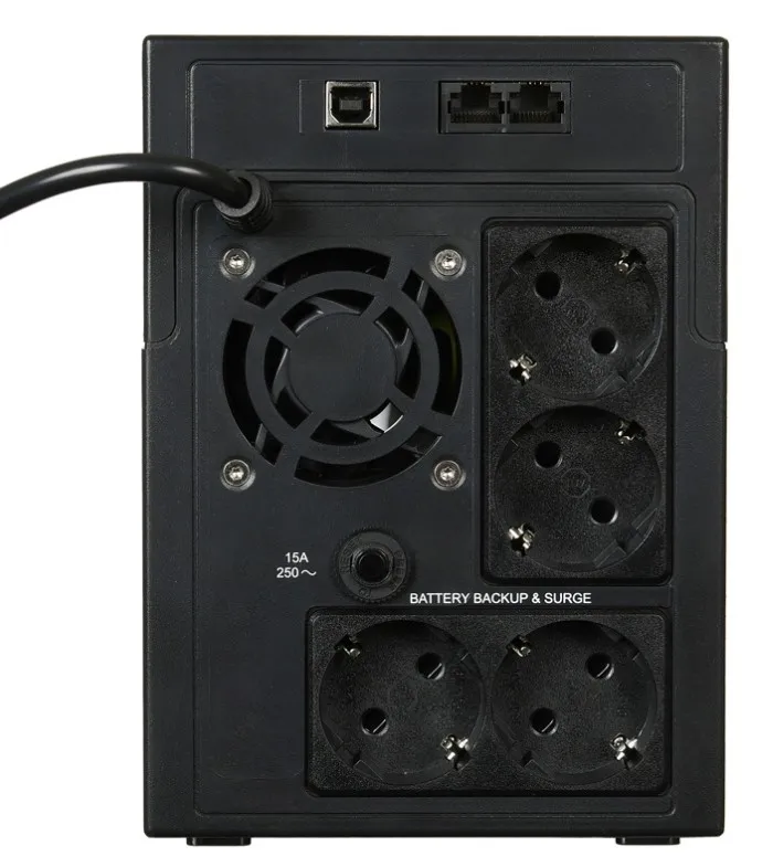 Светодиодная индикация: 2 шт зеленых – питание от сети, линейный режим работы; желтый мигающий – питание от аккумулятора; красный – ошибка или низкий заряд аккумулятора. Звуковое оповещение: сигнал каждые 10 сек – питание от аккумулятора; сигнал каждую 1 сек – низкий заряд аккумулятора; сигнал каждые 0,5 сек – перегрузка; непрерывный сигнал – неисправность. Кнопка Вкл./Выкл. |