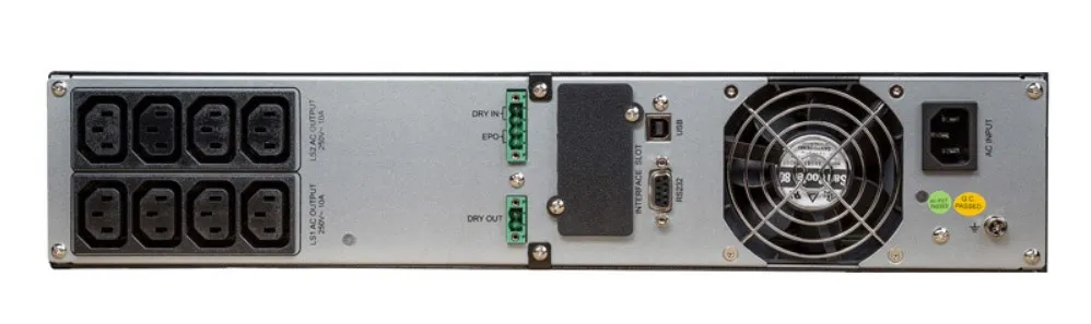 Корпус выполнен из металла, передняя панель пластиковая. Управление и настройка ИБП IPPON INNOVA RT осуществляется с помощью механических кнопок и информационного ЖК-экрана с подсветкой. На экране отображается текущий режим работы, уровень заряда батарей и мощность подключенной нагрузки, напряжение и частота.
