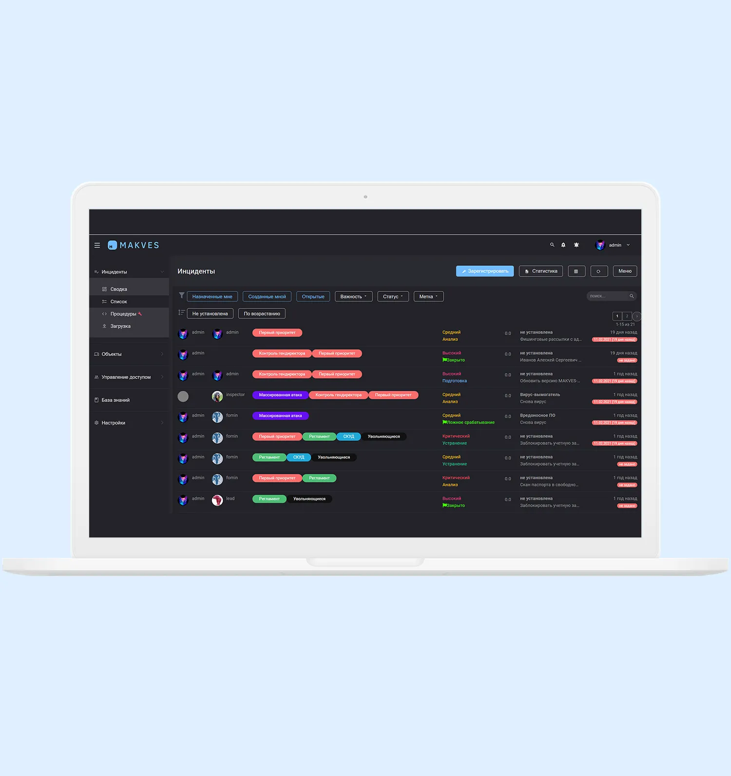 MAKVES IRP – СИСТЕМА ДЛЯ РЕГИСТРАЦИИ И УЧЕТА ИНЦИДЕНТОВ - Задача системы автоматизировать процесс менеджмента событий в сфере информационной и экономической безопасности