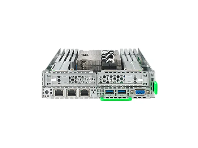 - Каждый из серверных узлов Fujitsu PRIMERGY CX2550 M2 обеспечивает поддержку 16 модулям оперативной памяти DDR4 и 6 съемным накопителям информации.