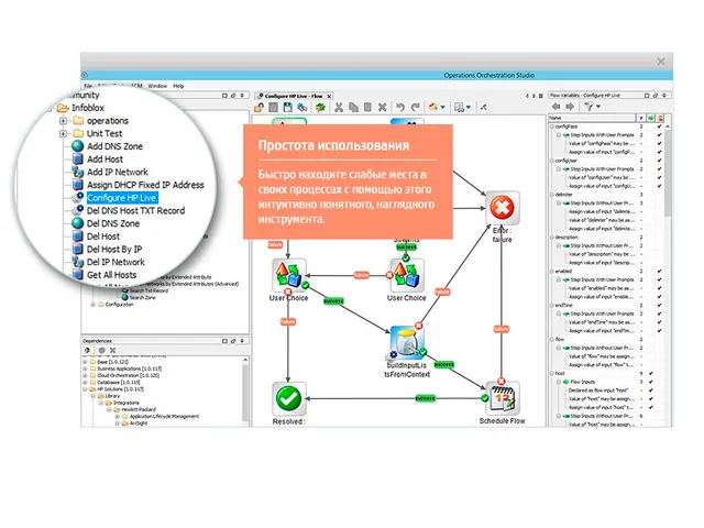 - Прежде всего, в основе программного обеспечения Operations Orchestration лежит комплексный подход к управлению инфраструктурой, при этом внимание здесь уделяется даже мельчайшим процессам.
